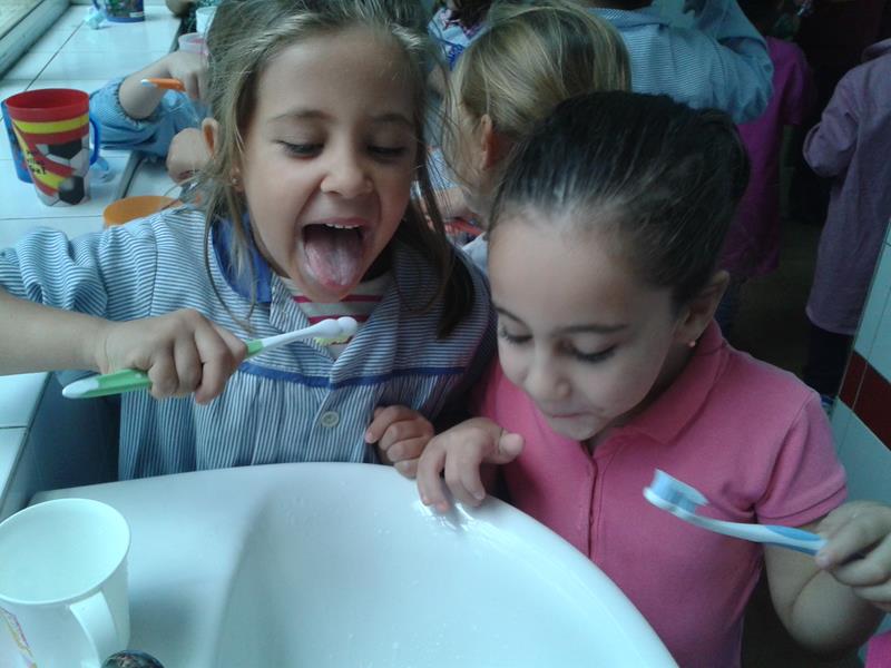 Después han estado practicando con este gran cepillo y aunque era un poco difícil seguir los mismos movimientos que nos han enseñado, al menos han captado la idea de limpiar todos los dientes por todas partes. Con la práctica irán mejorando la técnica.