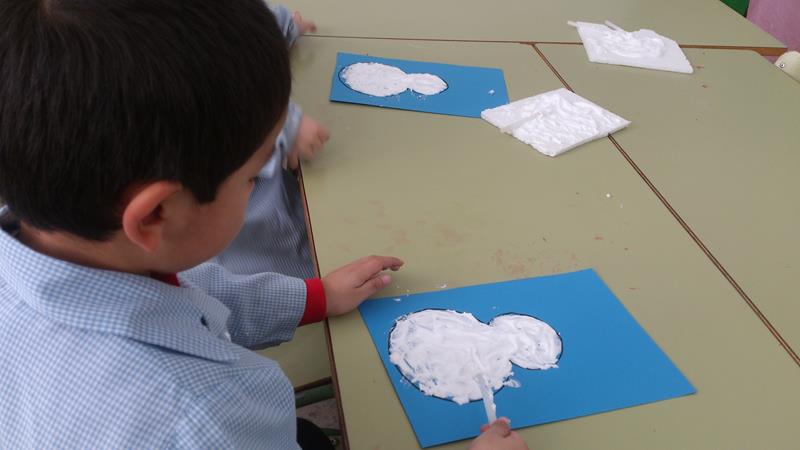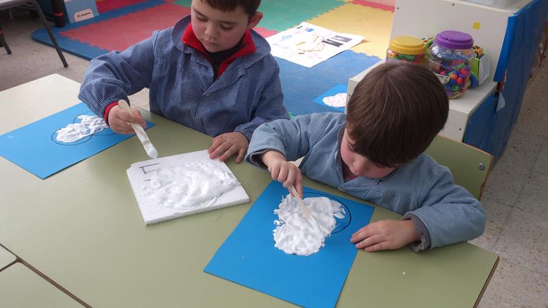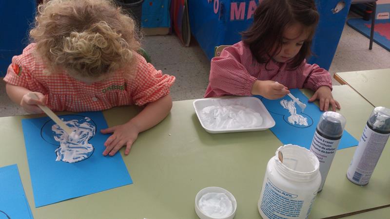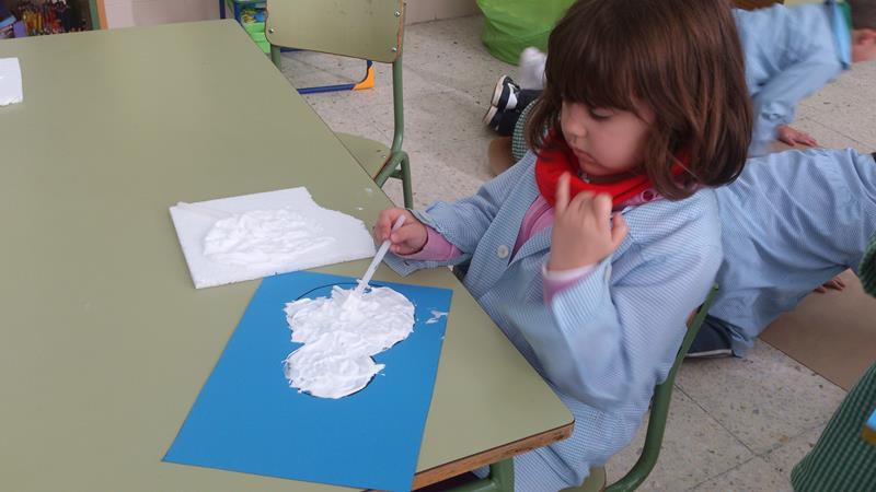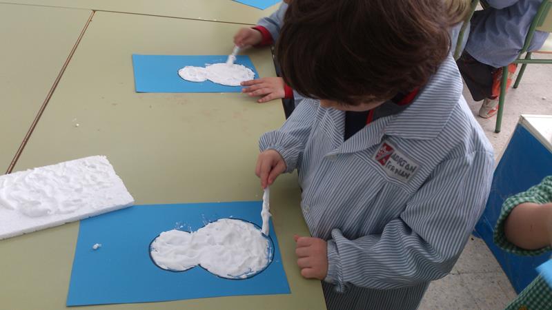 El año pasado vi en el blog la clase de Miren, blog que me encanta, por cierto, una experiencia que hizo con espuma de afeitar. Me pareció muy interesante así que este año lo hemos hecho en clase.