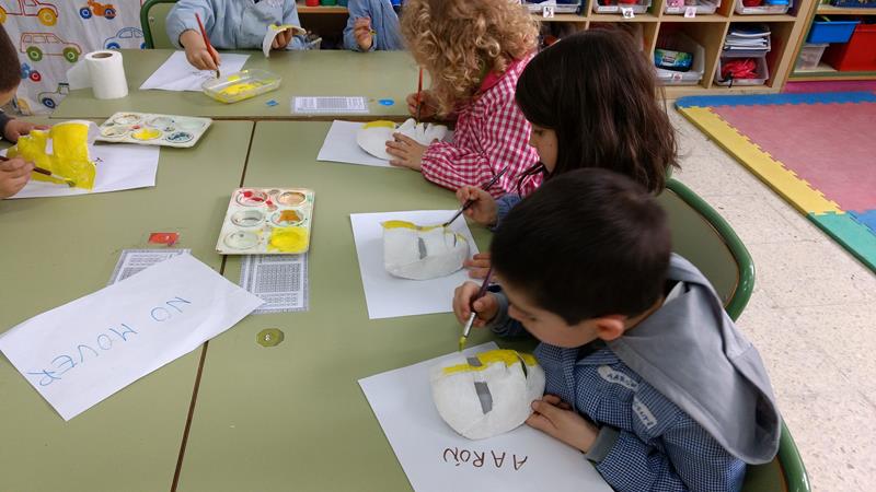 Las máscaras que hemos realizado con escayola han sido más complicadas, fundamentalmente porque necesitan un tiempo para cada niño aproximado de 20 minutos. Así que he tenido que sacar tiempo y que ninguno se quedara sin su máscara personal. Los niños y niñas se han portado genial y han sido muy valientes ya que aunque no duele, es una sensación incómoda. Arturo ha sido el único que dijo que le dejó súper relajado…