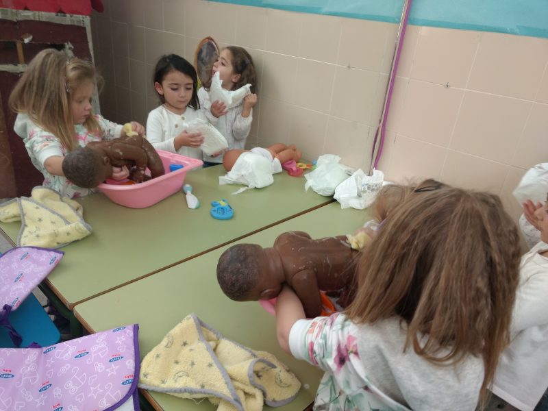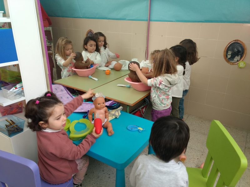 En clase jugamos todos los días y para que no sea un caos lo hacemos a través de rincones en los que los peques rotan y así pueden disfrutar de todos ellos. Sin lugar a dudas, cada uno tiene su favorito, que casi siempre es la casita.