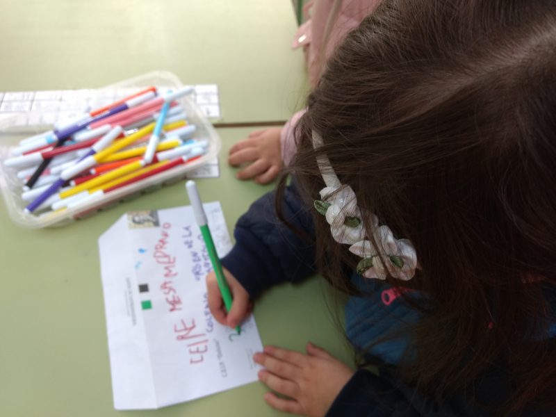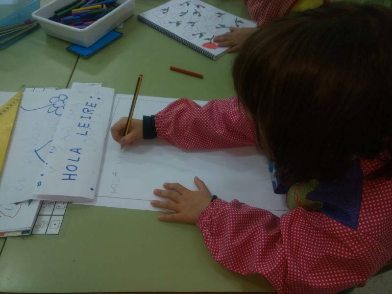 Leire nos mandó hace algún tiempo un vídeo a través de un correo electrónico. Nosotros le hemos contestado con una carta que hemos hecho entre todos y todas. Para ser la primera ha quedado bastante bien.