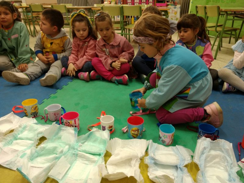 Con un poco de teatro y unos cuantos pañales hemos hecho nieve artificial de colores para jugar un ratito.