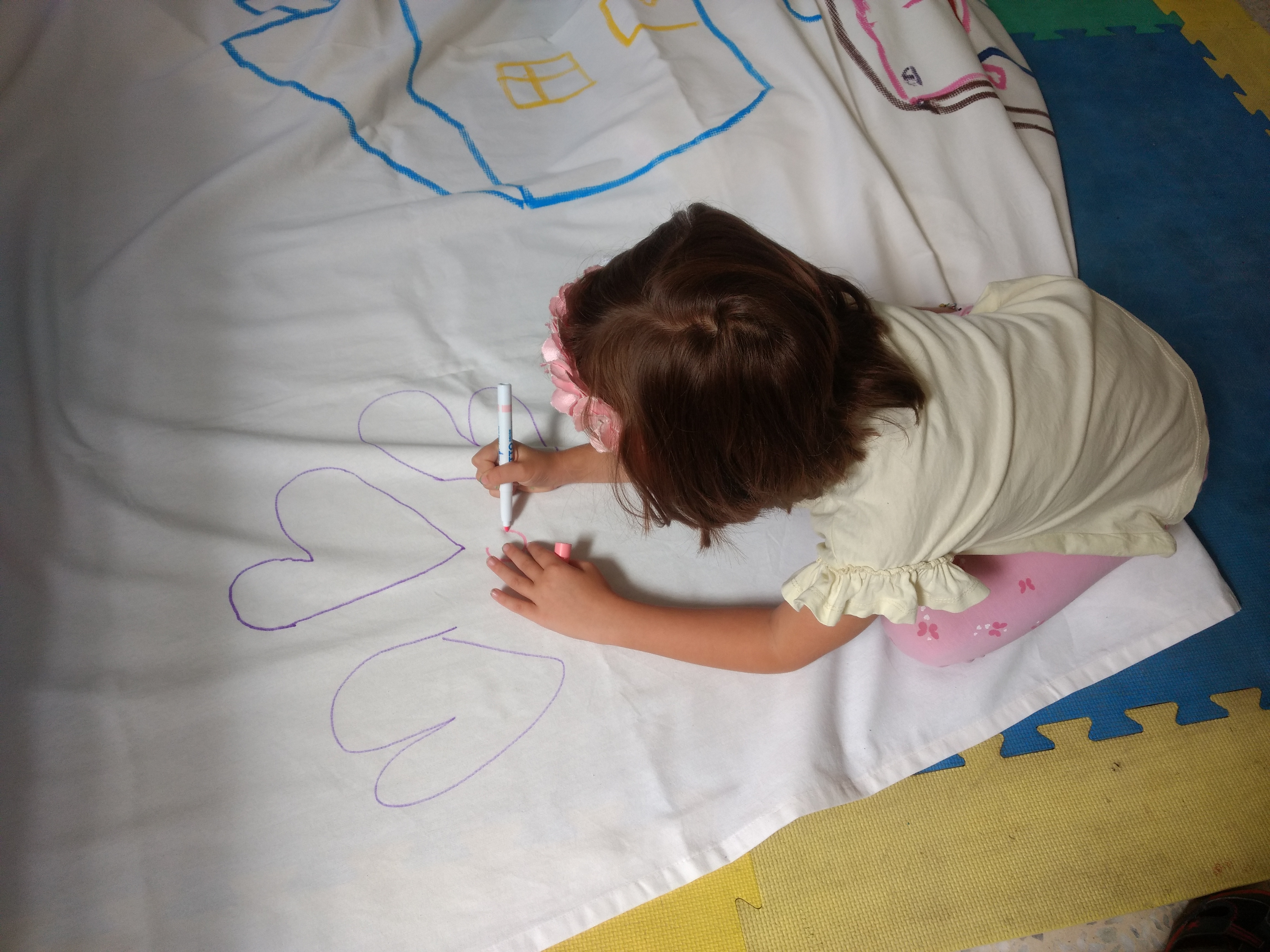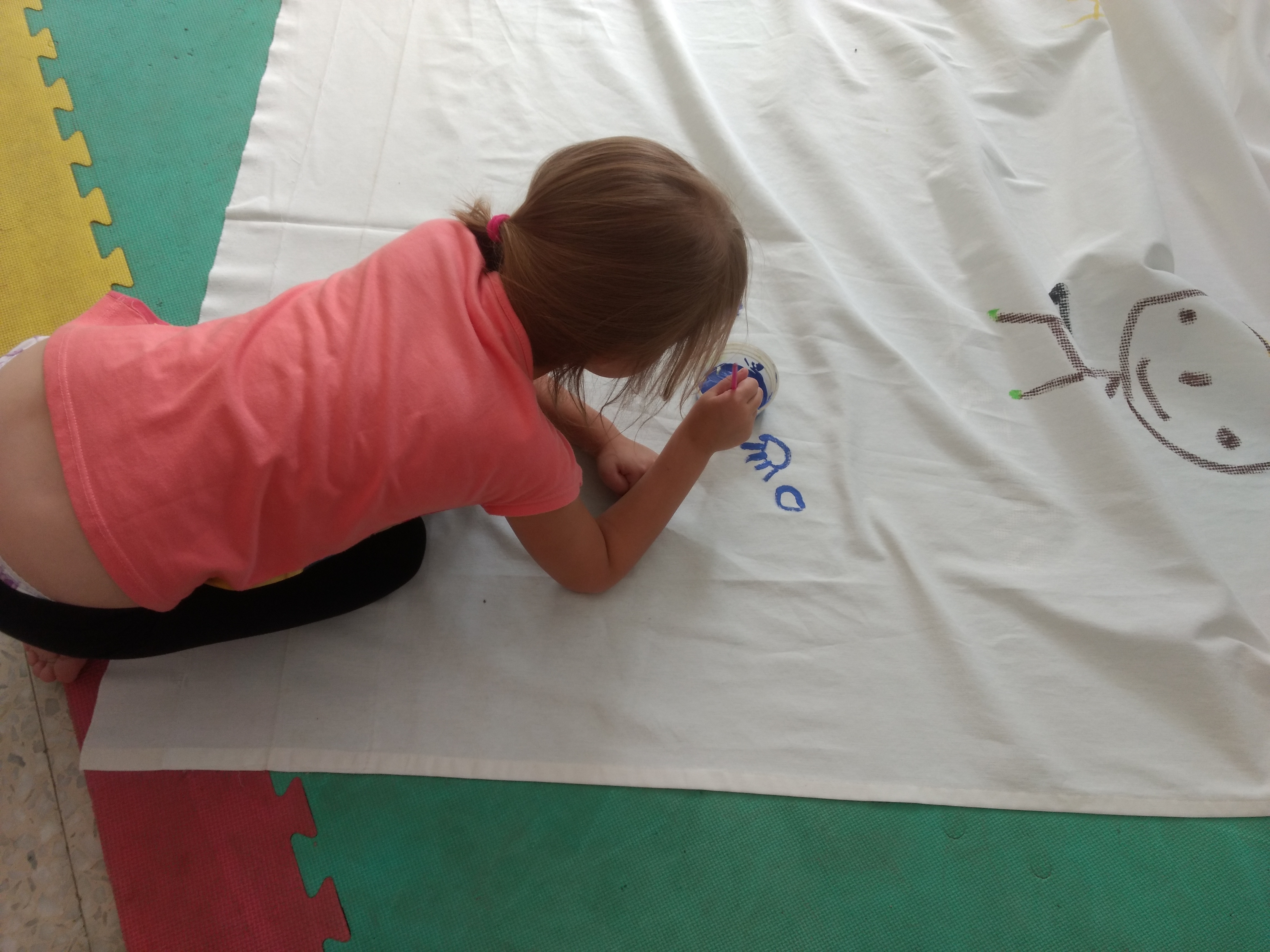 Puesto que han pintado el aula en el verano y hemos descolgado las cortinas, aprovechamos la ocasión para decorarlas. Me gusta que los niños y niñas que están conmigo dejen su impronta. Así siempre los tengo presentes.