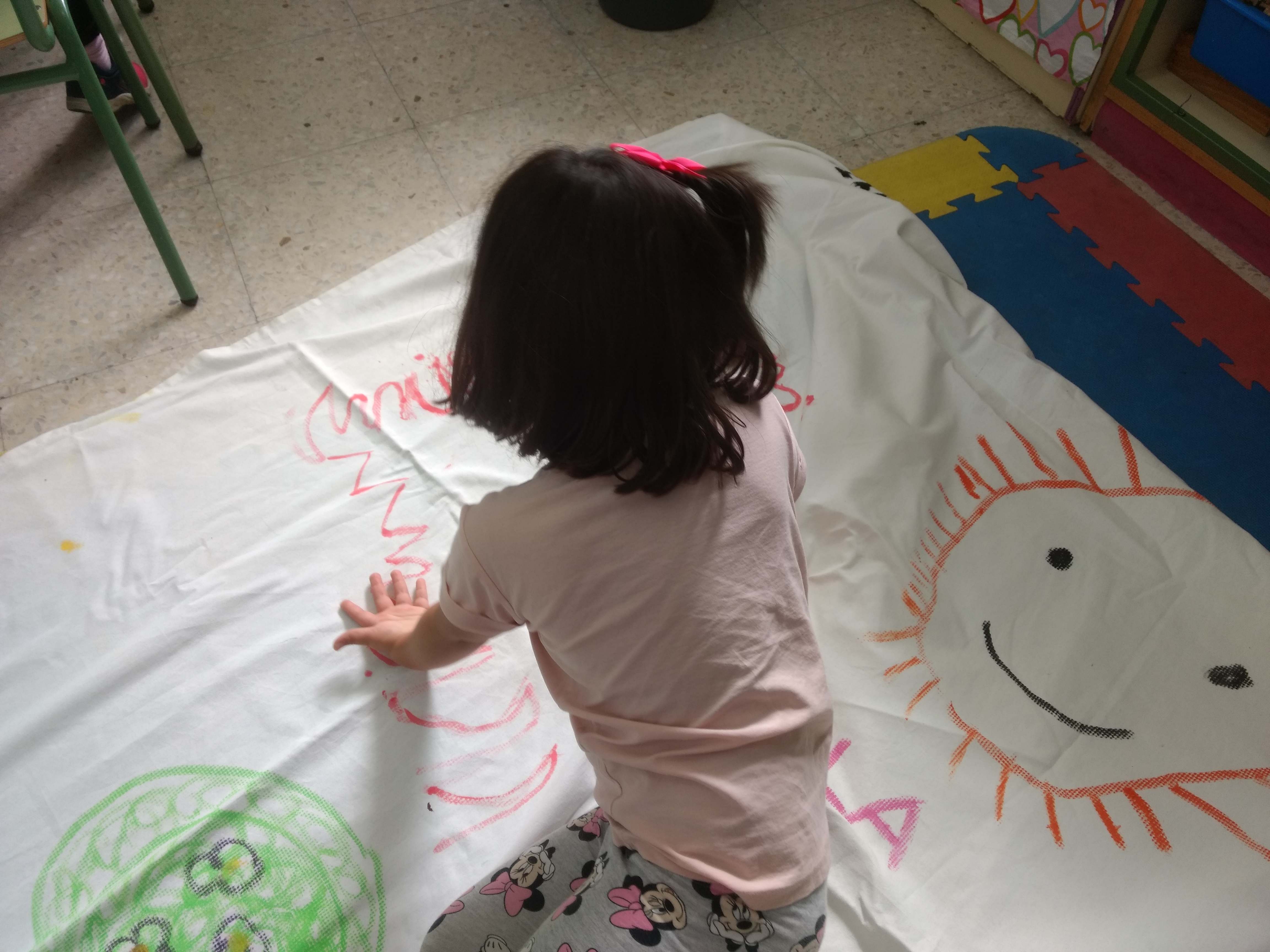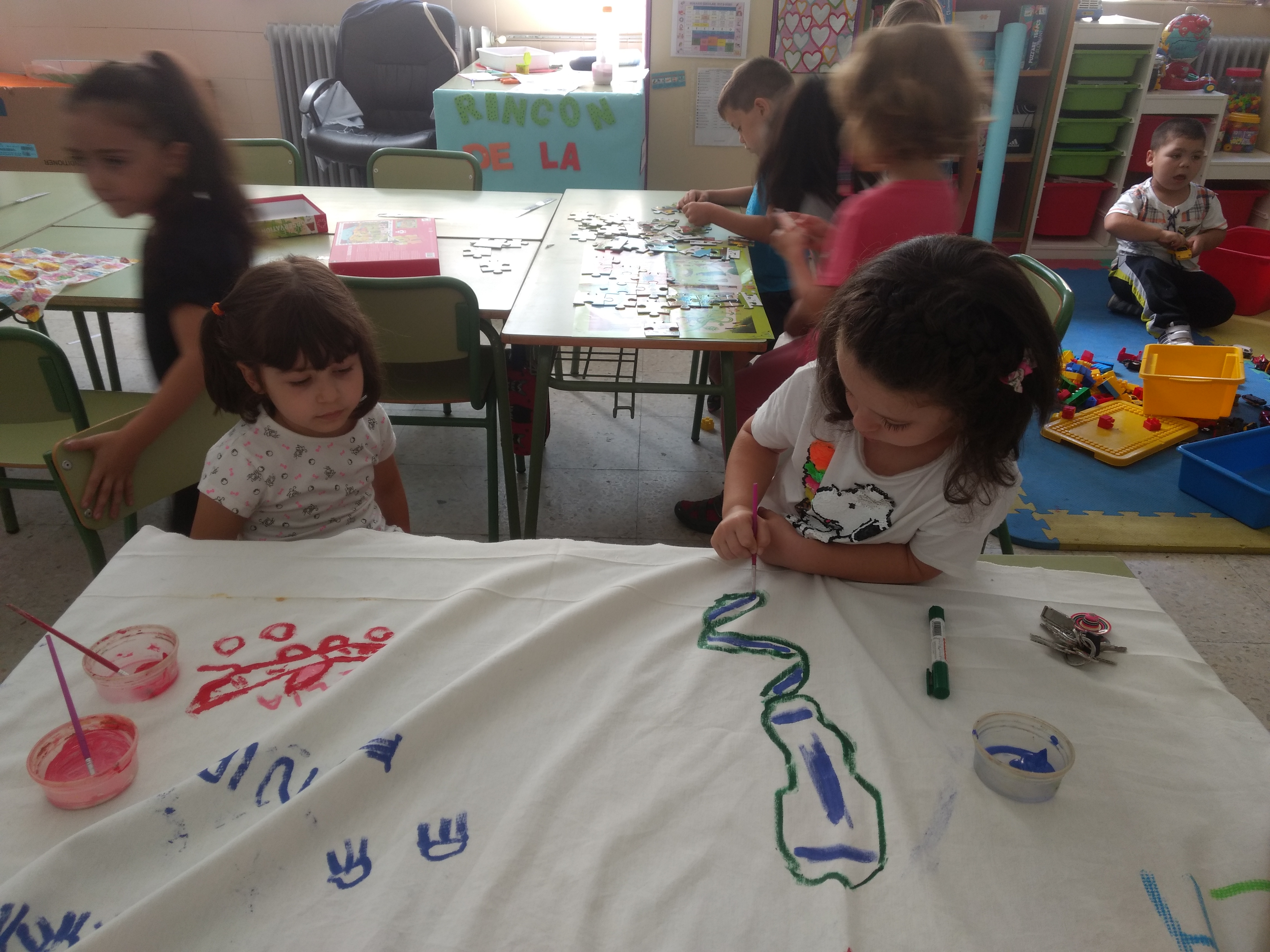 Puesto que han pintado el aula en el verano y hemos descolgado las cortinas, aprovechamos la ocasión para decorarlas. Me gusta que los niños y niñas que están conmigo dejen su impronta. Así siempre los tengo presentes.