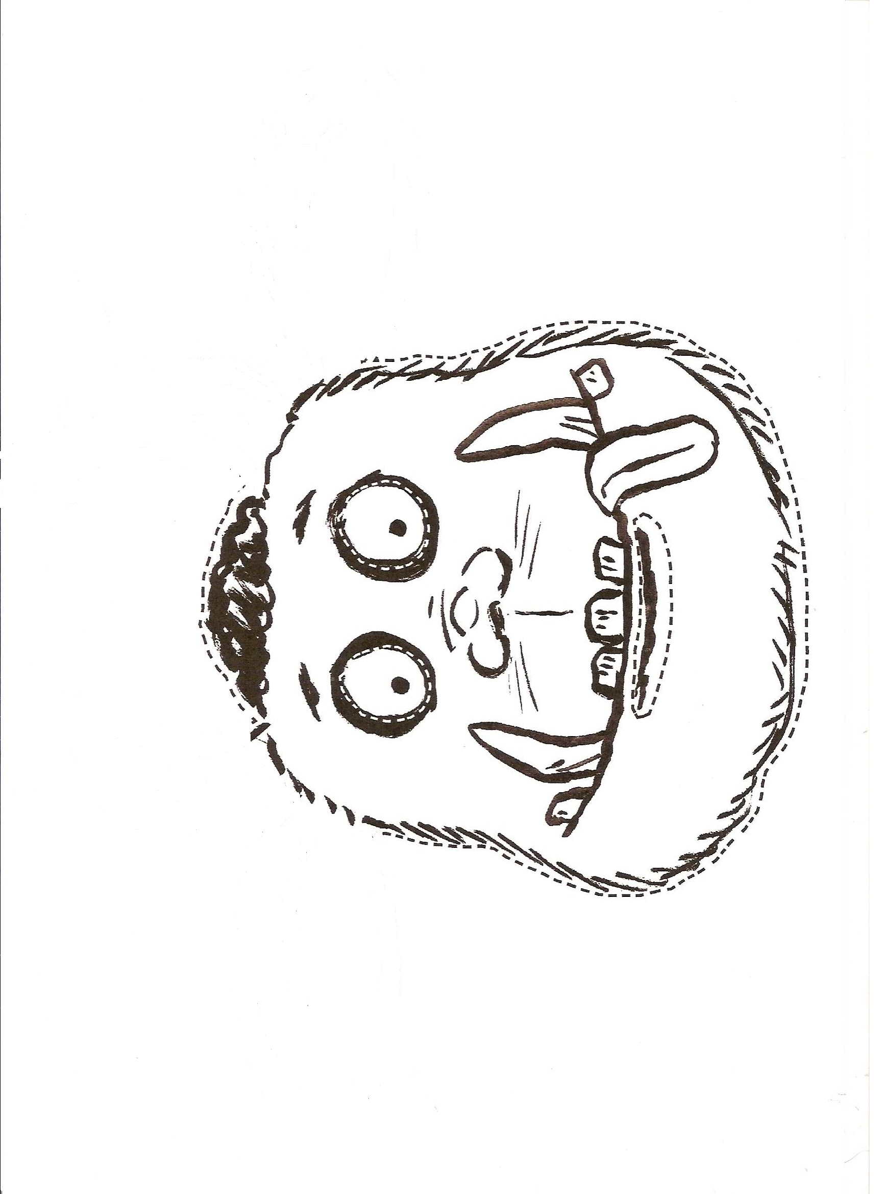 Aunque es complicado hacer una máscara de carantoña, hemos intentado hacer una mezcla con una careta del Grúfalo retocada, añadiéndole pelo y algun pimiento seco como adornos más representativos.