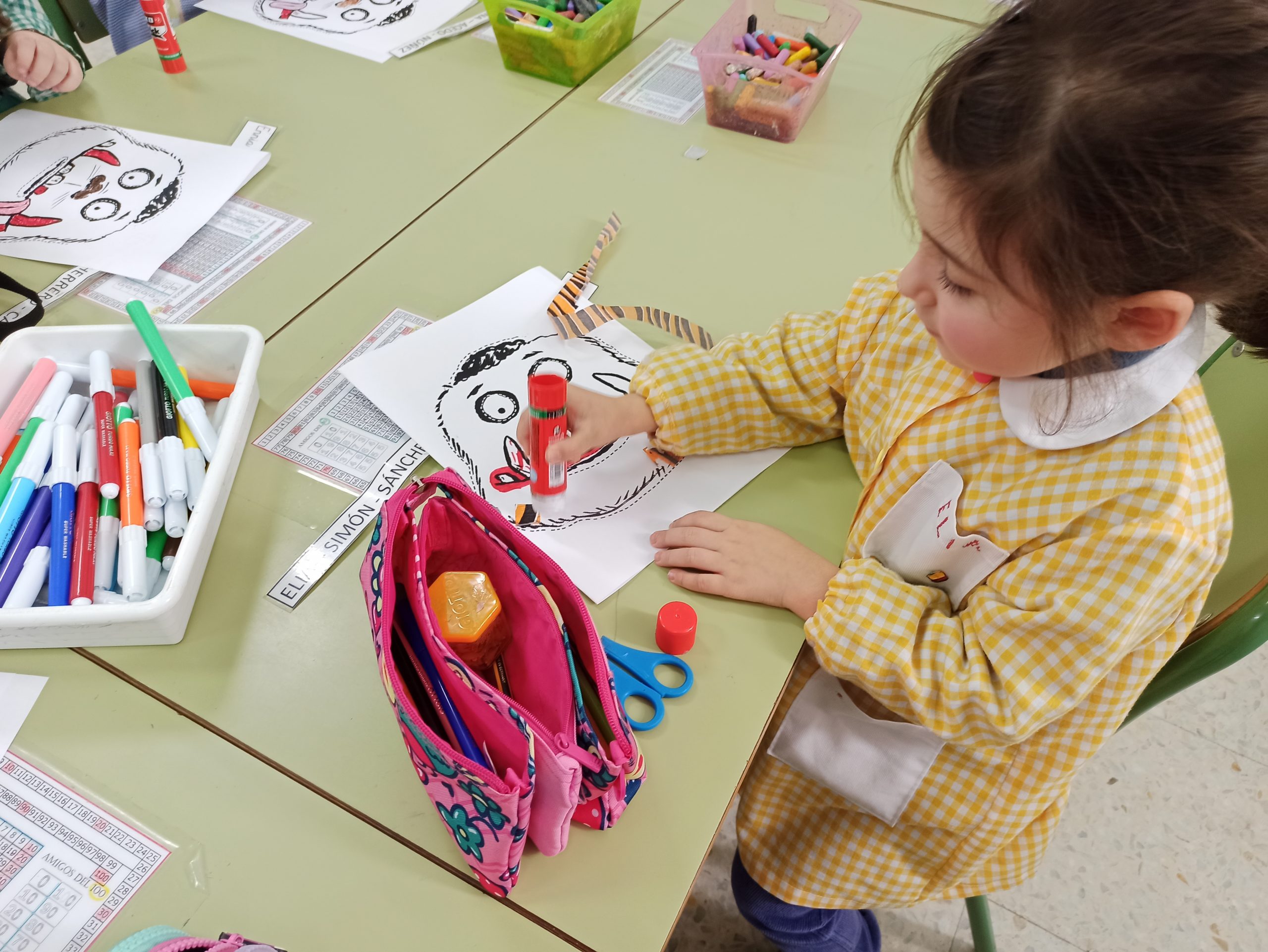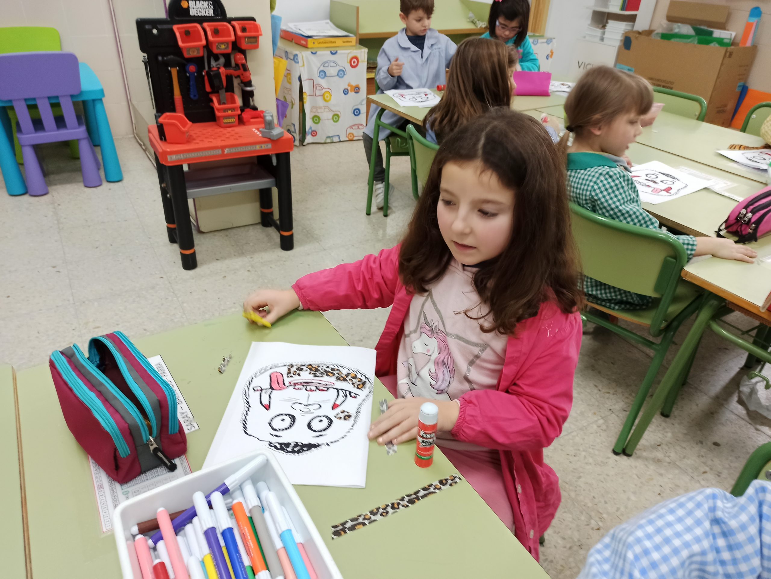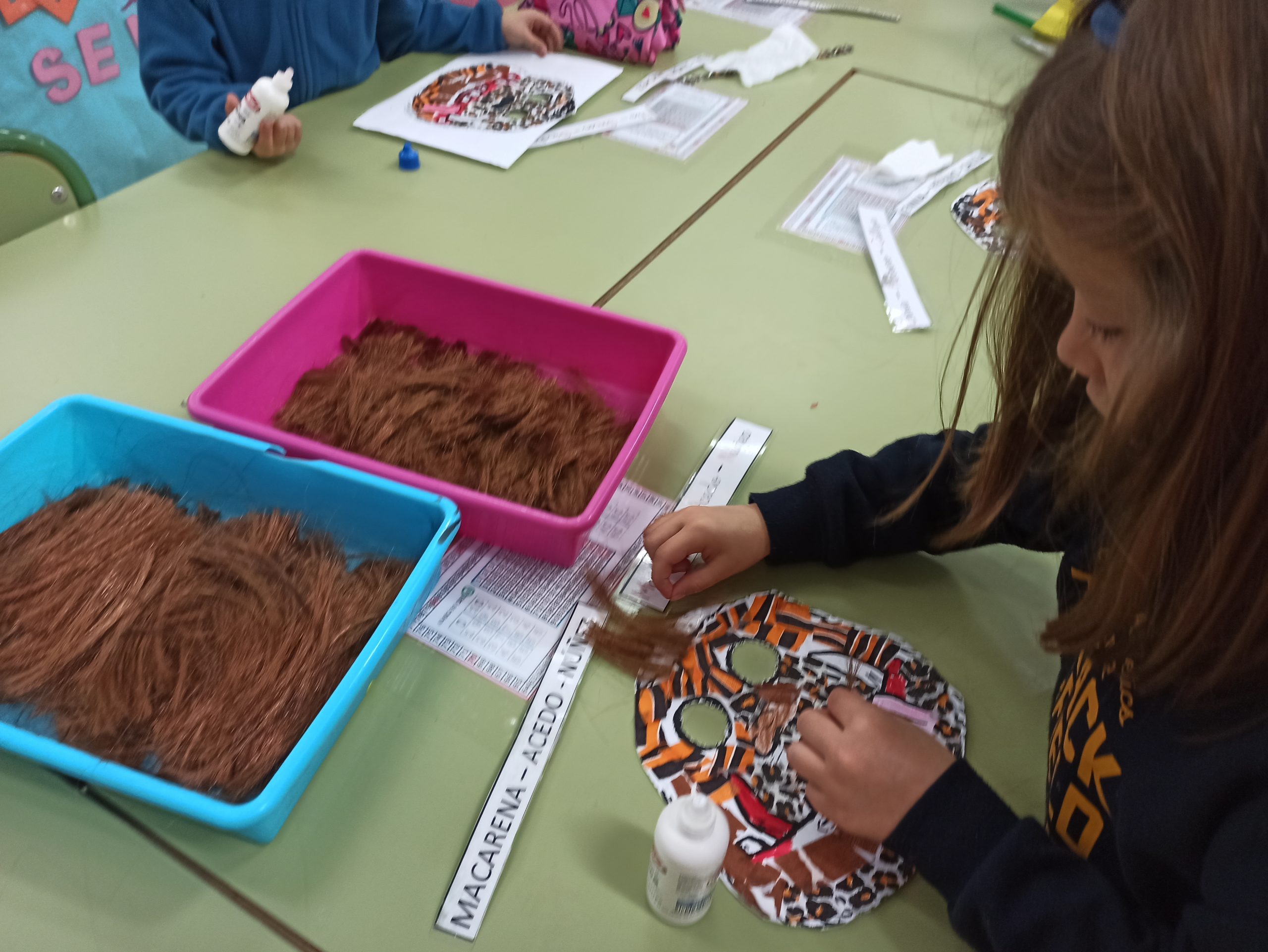 Lo que no esperábamos esta semana era contar con una máscara real de carantoña. La ha traído la mamá y papá de Macarena y ha sido toda una atracción en el colegio.