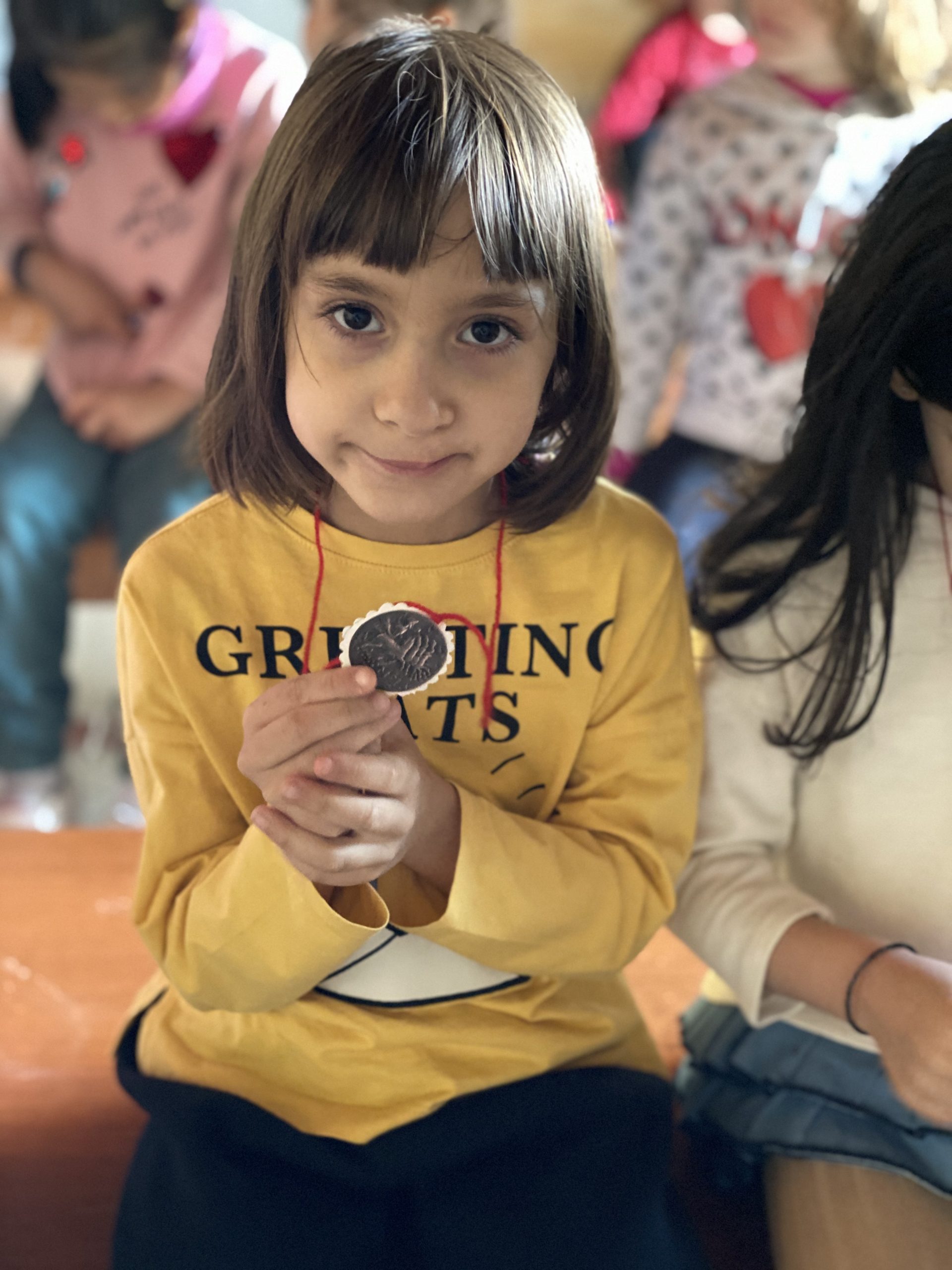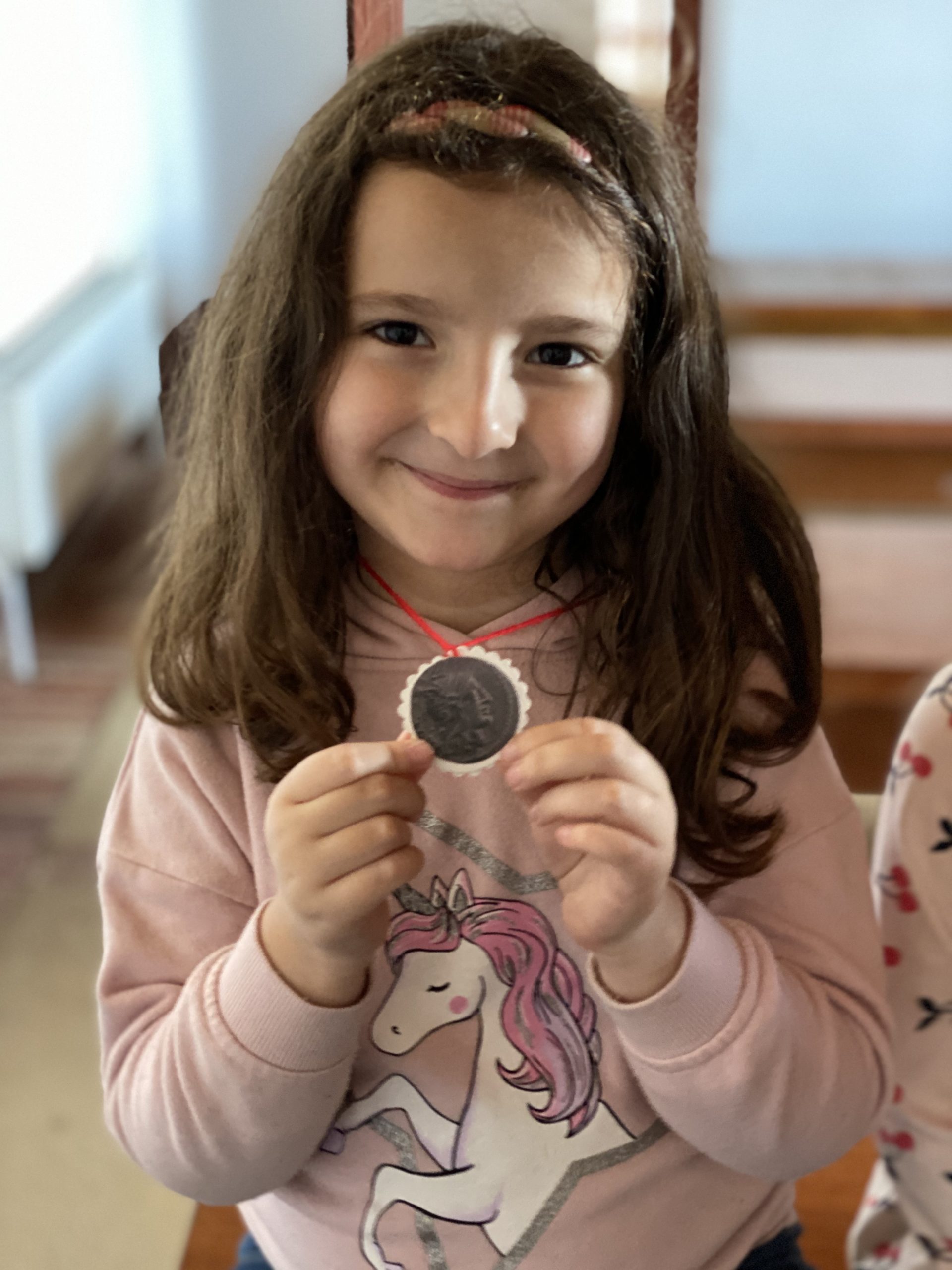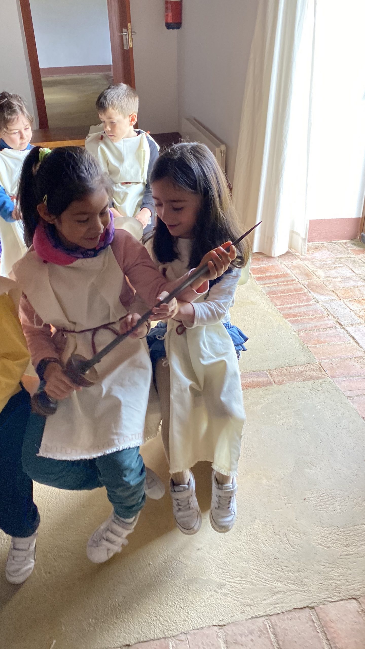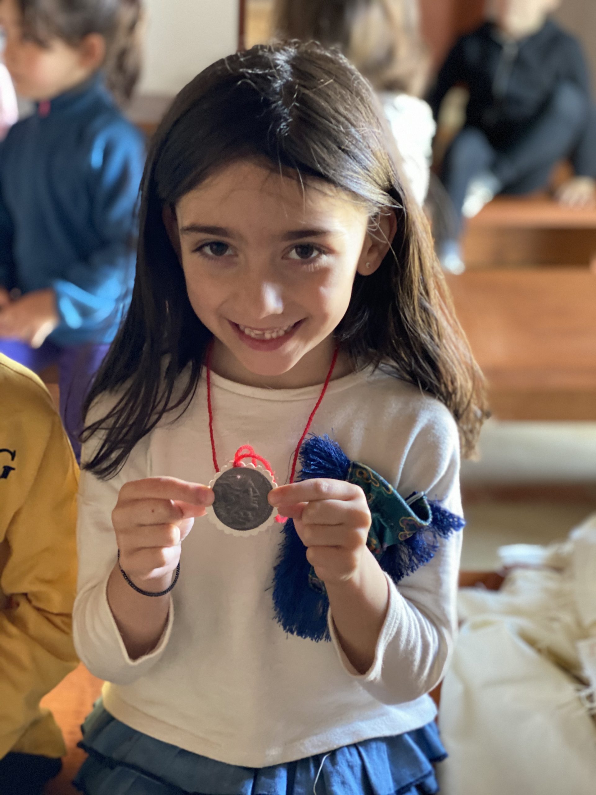Y Susi nos ha regalado una medalla del castro con una moneda antigua. Se han marchado tan contentos, a pesar de las orugas procesionarias que estaban en el suelo y han asustado a algunos peques.