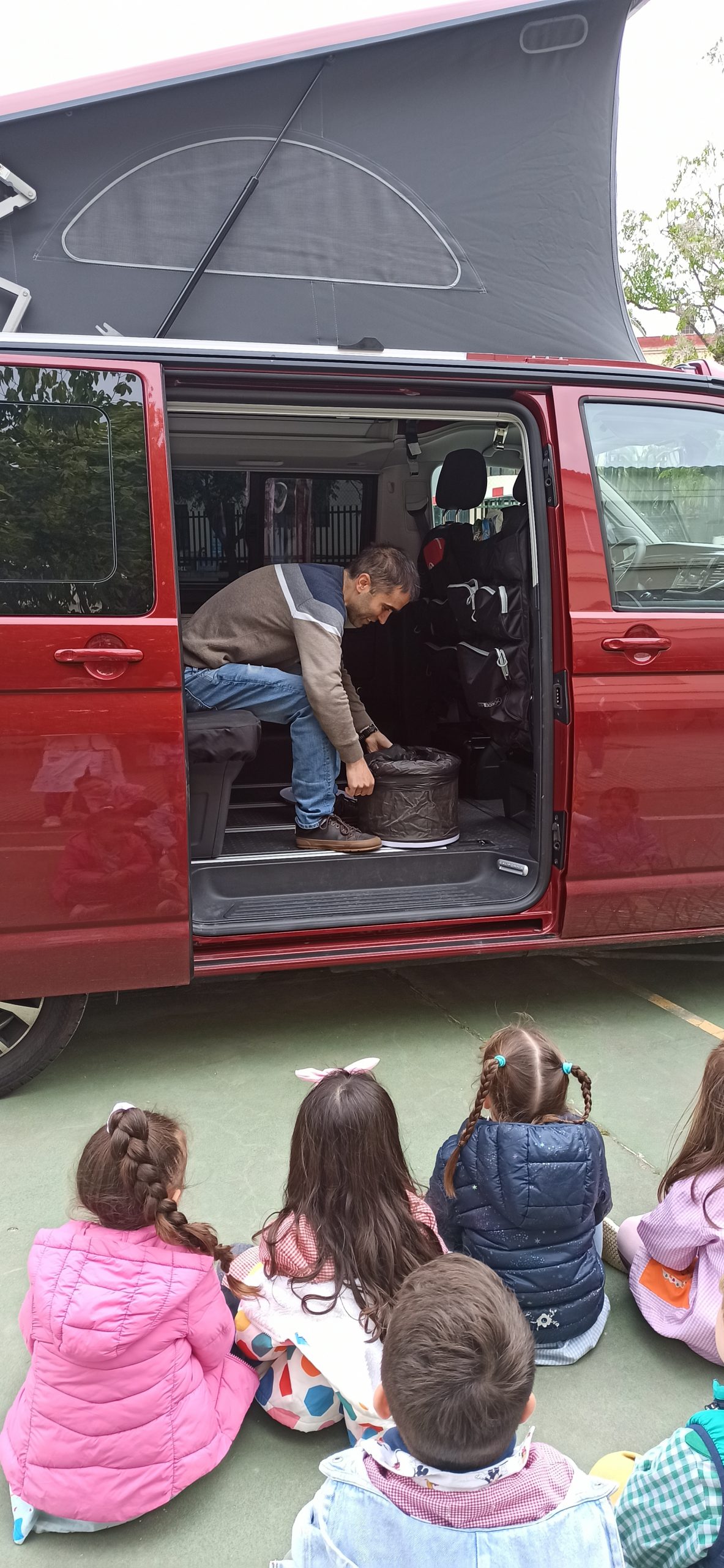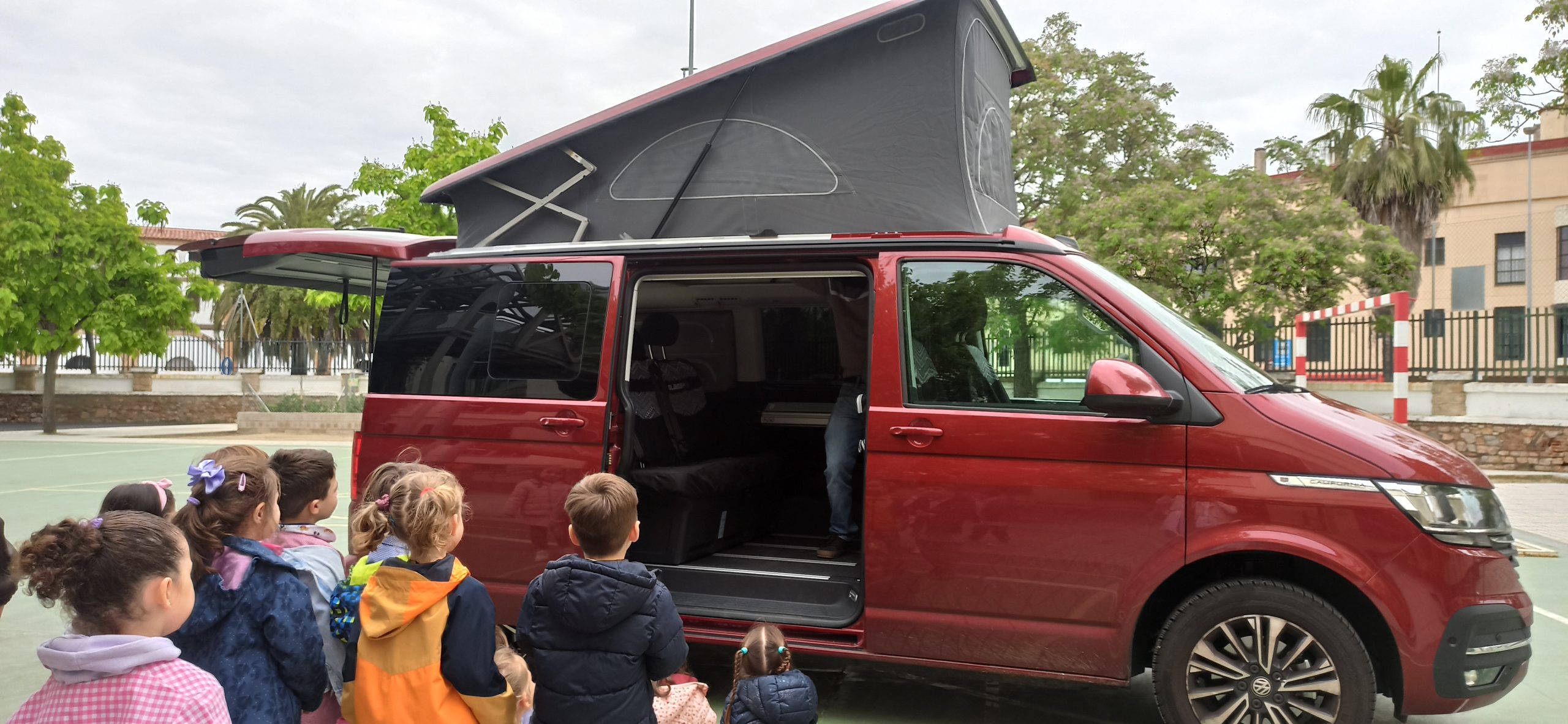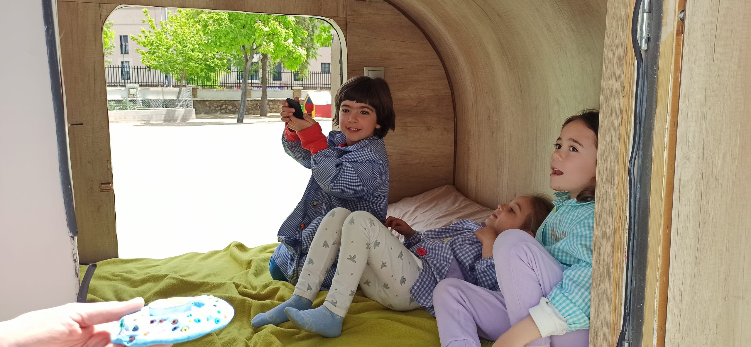 También hemos disfrutado mucho con la Camper de Sofía. Juan vino a enseñarnos todos los recovecos. ¡Les encantó subirse en la cama elevable!