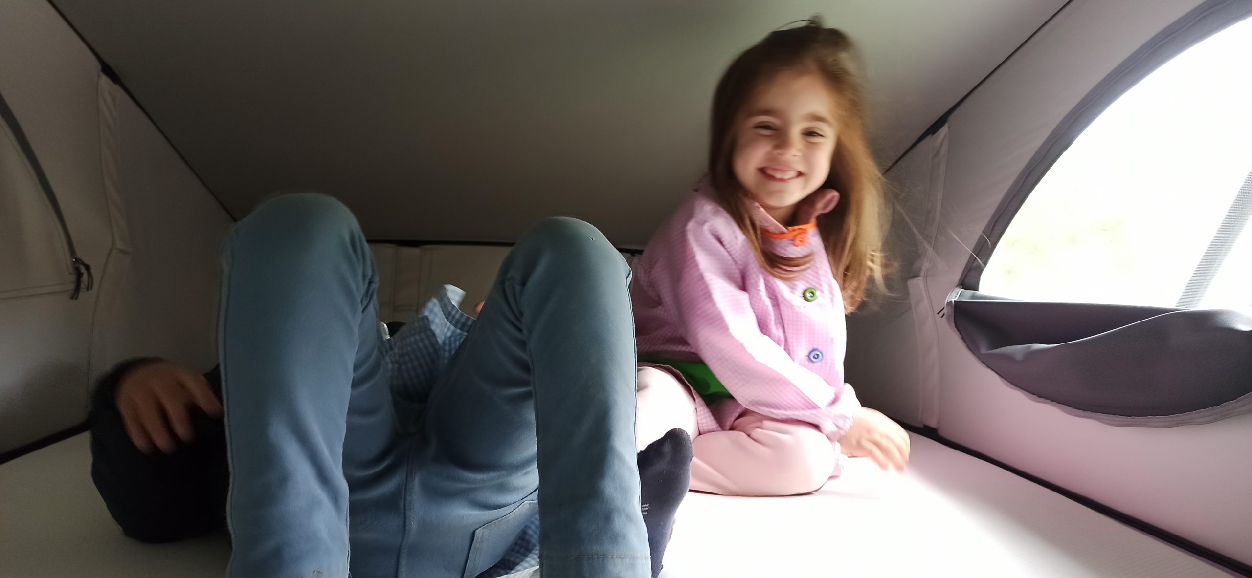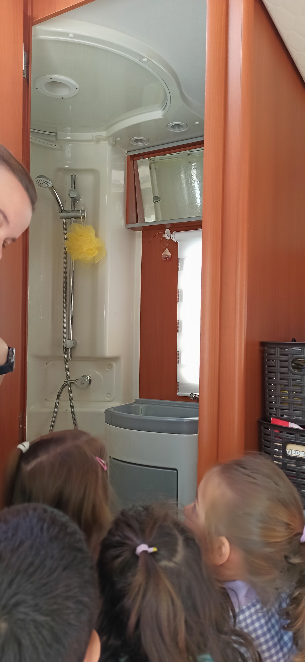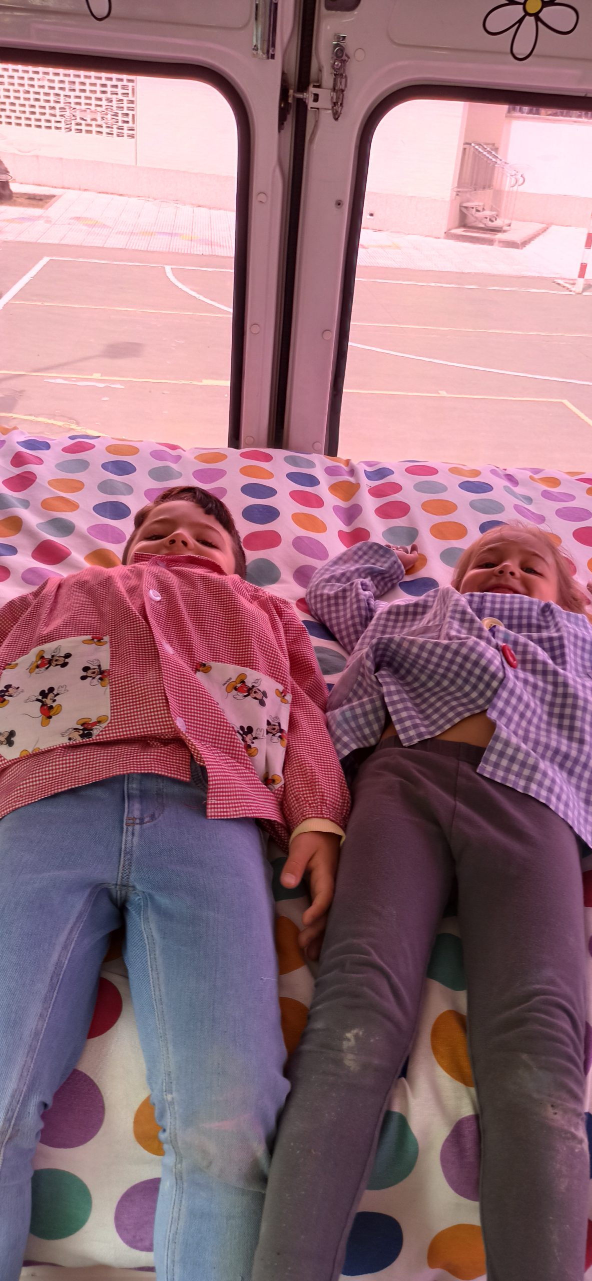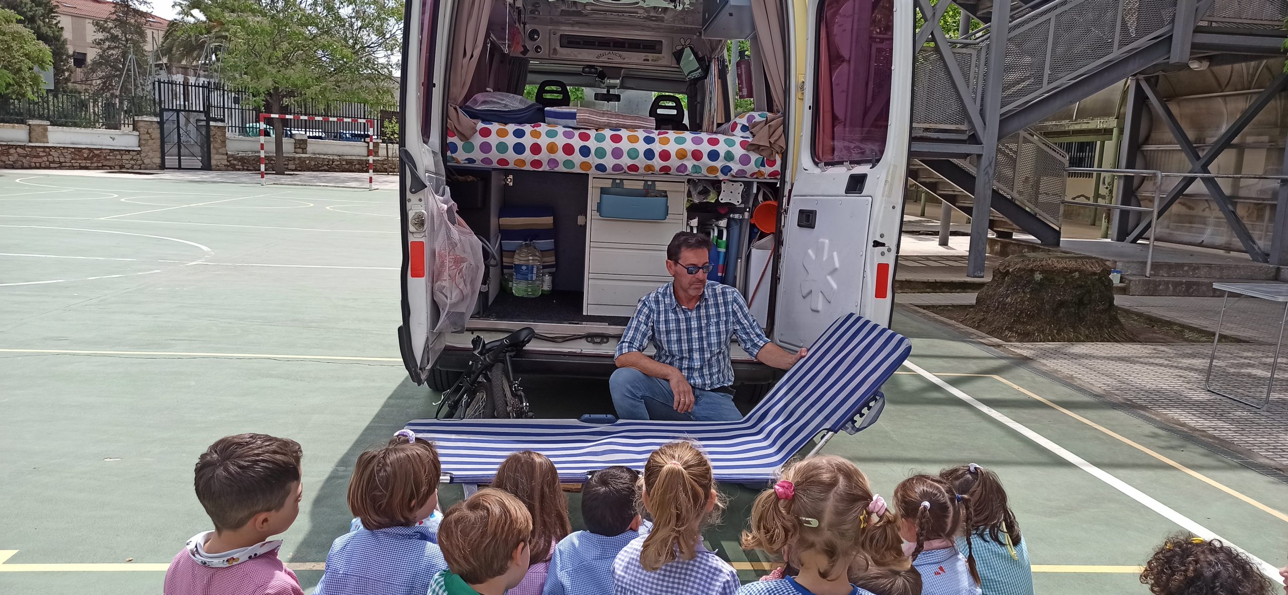 También hemos disfrutado mucho con la Camper de Sofía. Juan vino a enseñarnos todos los recovecos. ¡Les encantó subirse en la cama elevable!