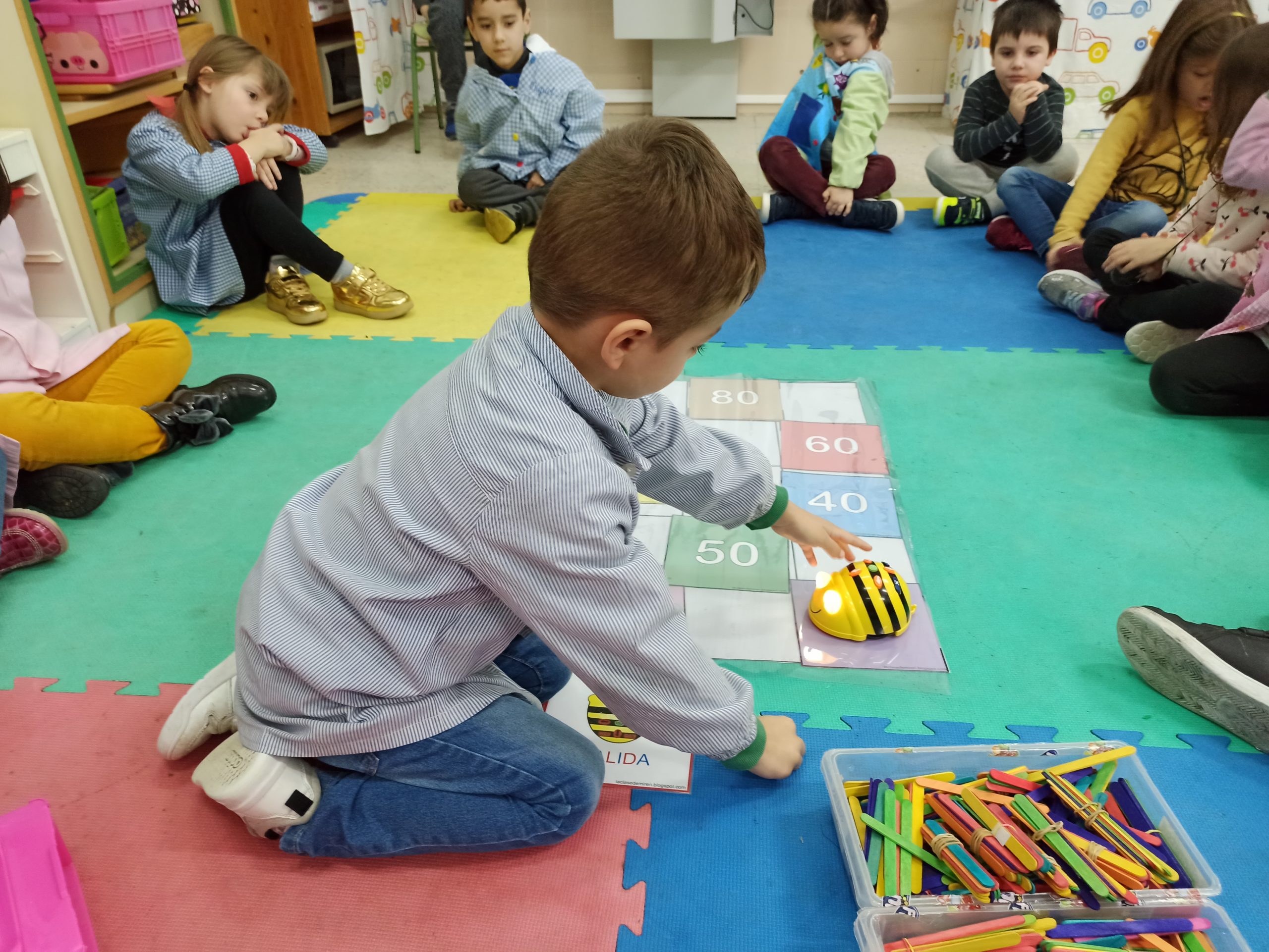 También saltamos en la recta numérica, para ir avanzando en las fases del conteo. Os dejo este video de la primera vez que lo hicimos. La gran mayoría de niños está en la fase 1 y 2, aunque ya hay algunos que están en la 3.