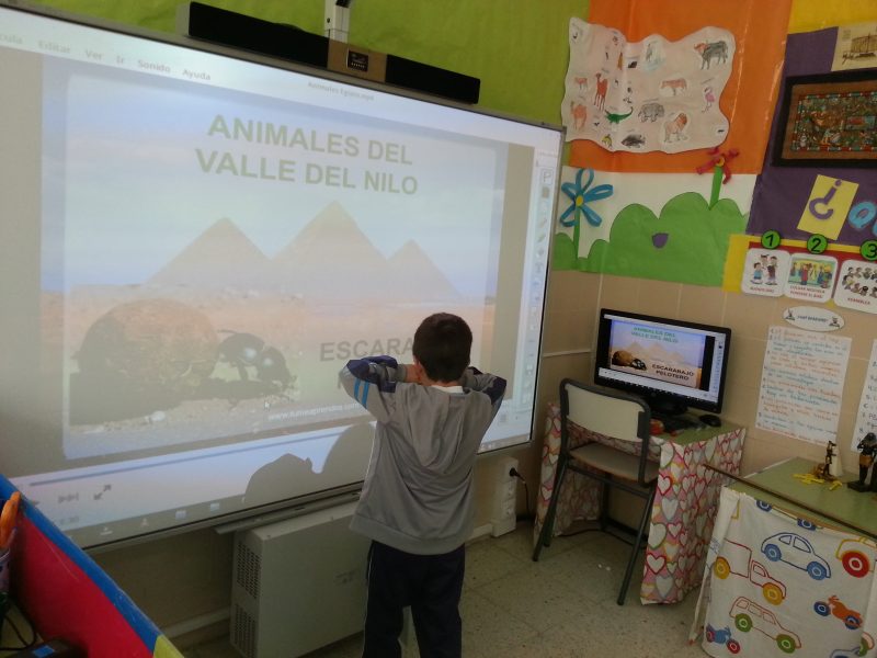 Los niños trajeron de casa nombres de animales que vivían en Egipto. Los fuimos copiando en la pizarra y señalando el que más se repetía: el cocodrilo, el escorpión y el escarabajo eran los más nombrados. Lo cierto es que trajeron muchísimos más de lo que yo pensaba. ¡No nos cabía en la pizarra!