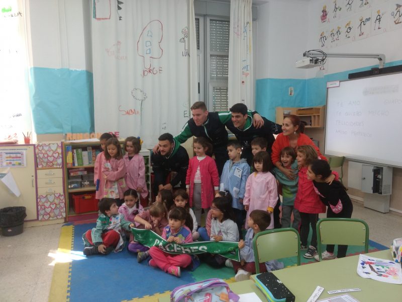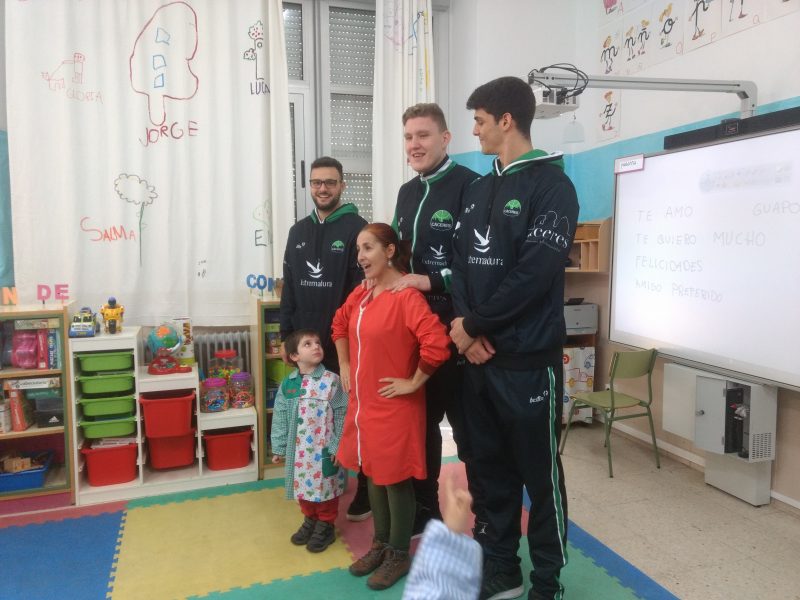 Hoy hemos recibido una visita sorpresa: algunos jugadores de Baloncesto del Cáceres nos han vistado y los peques se han quedado sorprendidos al verlos.
