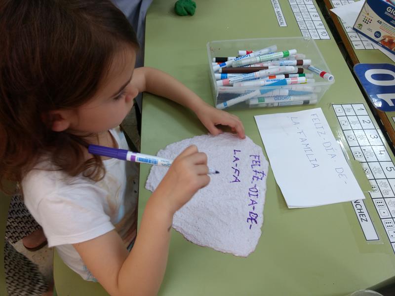 Hoy es el día internacional de las familias y los peques han querido rendir un pequeño homenaje a las suyas con un bonito regalo que han hecho con la seño Sara.