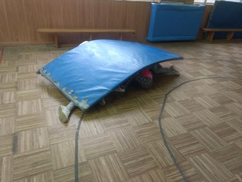 Ayer jueves nos tocaba ir al gimnasio, pero nos llevamos una sorpresa cuando al ir estaba ocupado con los mayores de 6º de primaria porque les habían cambiado el horario, así que tuvimos que improvisar y hacerlo en clase. No es lo mismo porque no tenemos espacio y no nos dio tiempo ni a quitarnos las zapatillas (que es lo que más les gusta de esta actividad: estar descalzos)