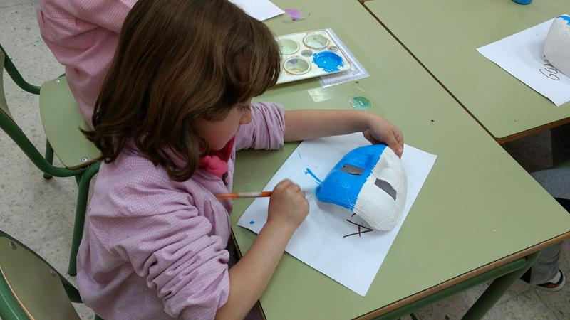 Las máscaras que hemos realizado con escayola han sido más complicadas, fundamentalmente porque necesitan un tiempo para cada niño aproximado de 20 minutos. Así que he tenido que sacar tiempo y que ninguno se quedara sin su máscara personal. Los niños y niñas se han portado genial y han sido muy valientes ya que aunque no duele, es una sensación incómoda. Arturo ha sido el único que dijo que le dejó súper relajado…