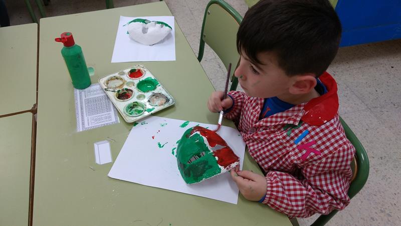 Cada uno ha decorado el collar en casa y el resto lo hemos preparado en clase. Ha sido una tarea compartida.