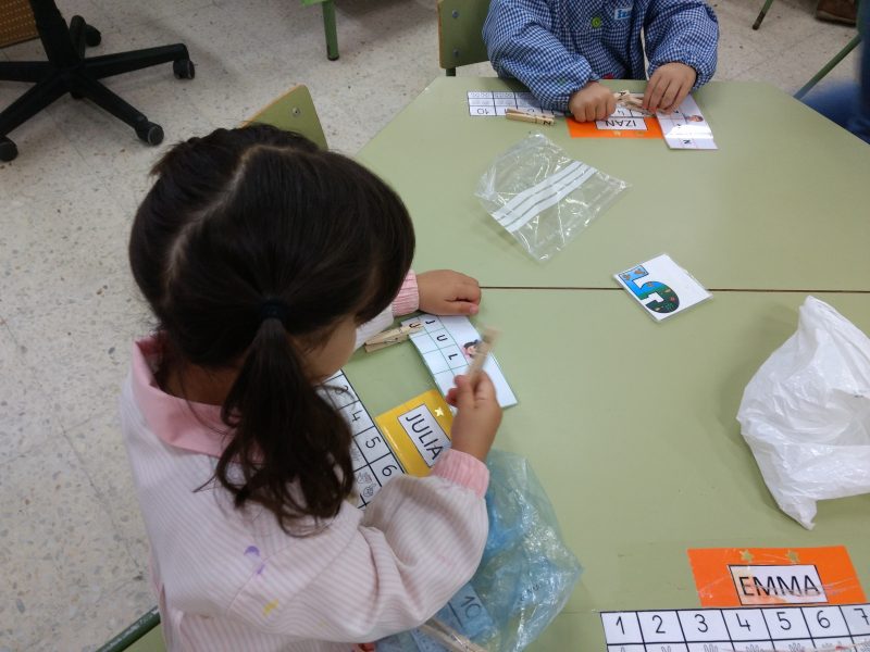 Con este sencillo material que consta de sus nombres plastificados y unas pinzas de madera se pueden hacer actividades muy completas.