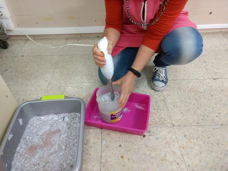 Para ello, la seño Cristina ha pensado en una actividad para el taller de reciclado de material y con pasta de papeles usados, cada uno ha hecho en un papel artesano un hermoso dibujo.
