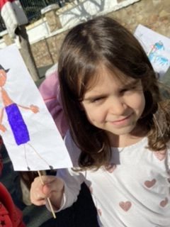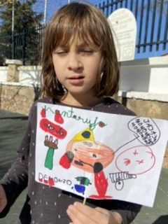 En clase han pintado su Pantaruja y la han visto arder. Ha sido muy divertido.