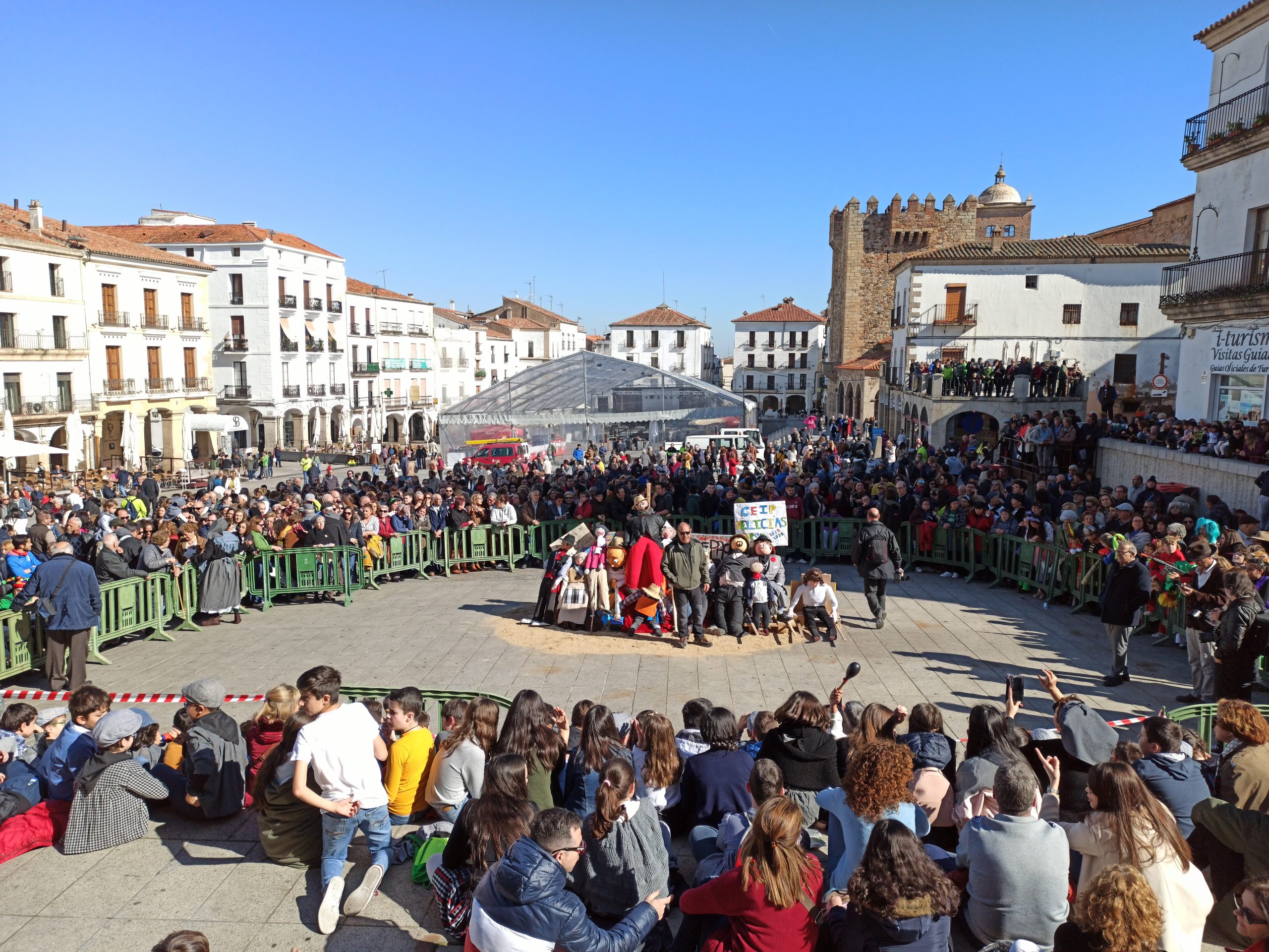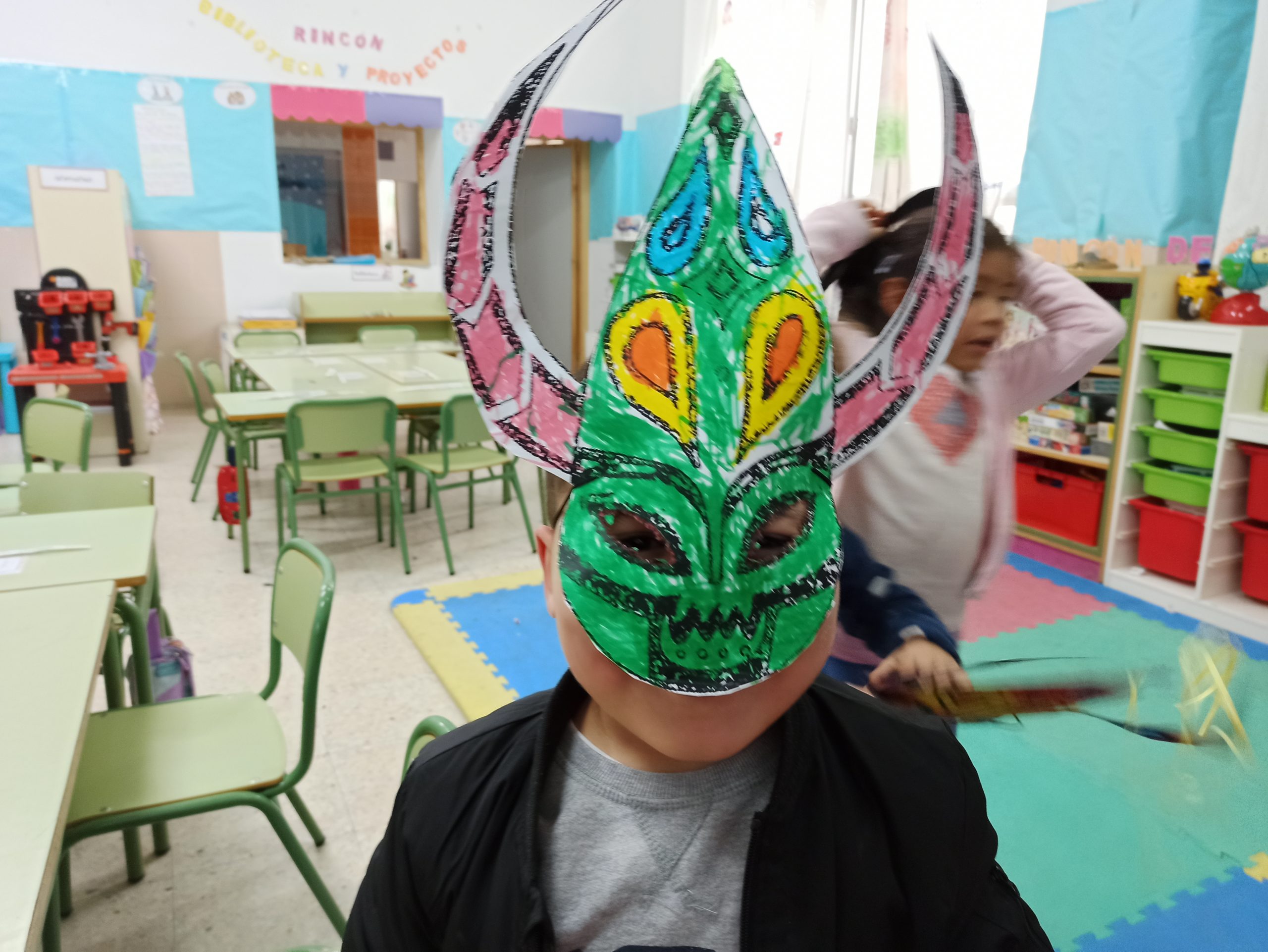 Entre cinco han tenido que sujetar la máscara ya que pesa un poquito.